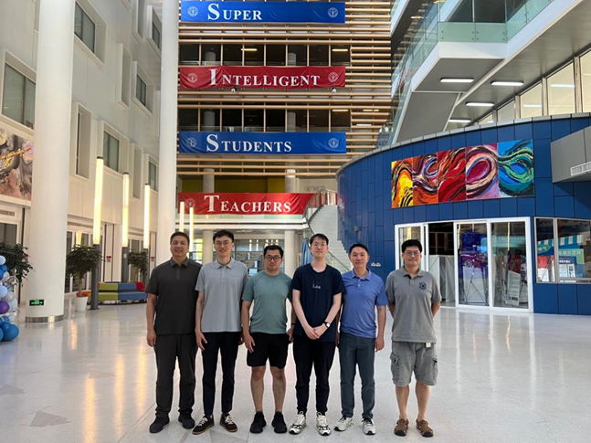 图1 论文作者合影(从右至左依次是何旭明、虞晶怡、邬一闻、陈禹阳、耿浩、吴涛)。信息学院虞晶怡教授和耿浩教授是论文的通讯作者,何旭明教授和吴涛教授是论文合作者。