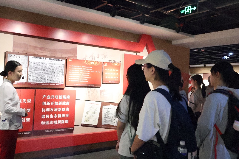 哈达铺是红军长征的重要转折点。1935年9月,中共中央率领红一方面军抵达此地,并通过当地获取的报纸,确认了陕北存在较大规模红军和革命根据地的关键信息,为党中央最终作出“到陕北去”、建立抗日前进阵地的战略决策提供了直接依据。在纪念馆内,讲解员系统讲述了红军长征途经哈达铺的历史背景、关键节点及其意义。实践队员认真参观馆内陈列的珍贵文献、历史照片与革命文物,深入了解红军在艰苦卓绝条件下坚持革命信念、坚定北上抗日的历程。