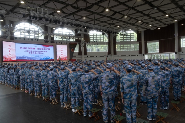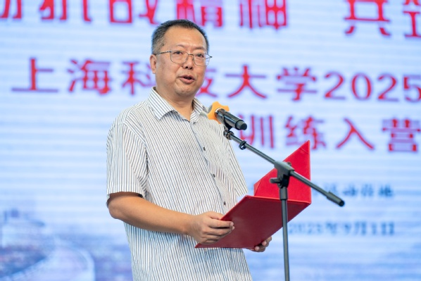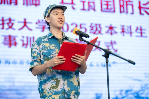 2025级本科生成昊庭作为学生代表发言。他表示,军训是深沉厚重的思政大课,更是鲜活的国防教育课。以科技报国为己任的上科大学子,唯有拥有强健的体魄、坚定的信念和顽强的精神,未来才能自信地挺起民族的脊梁。
